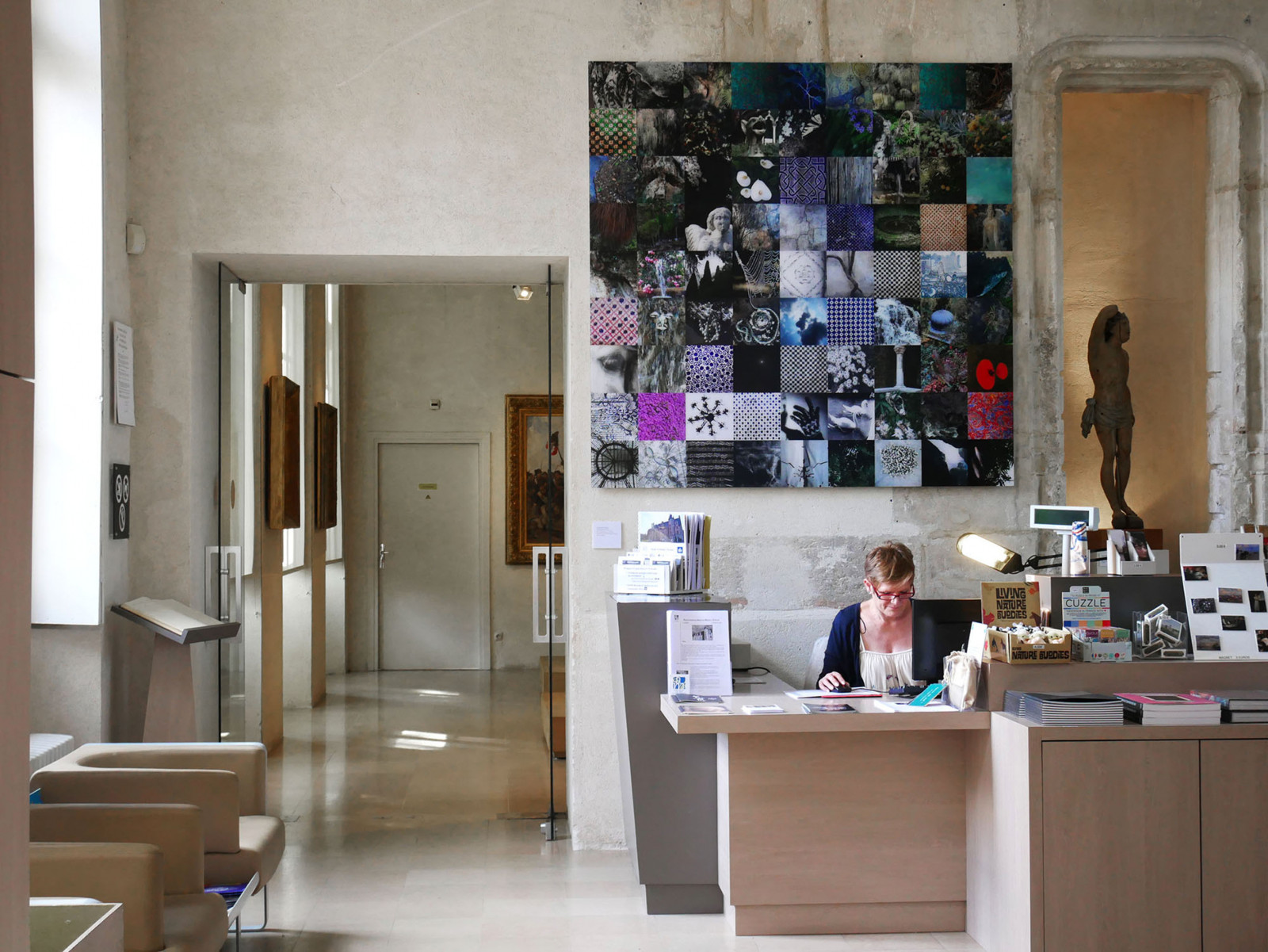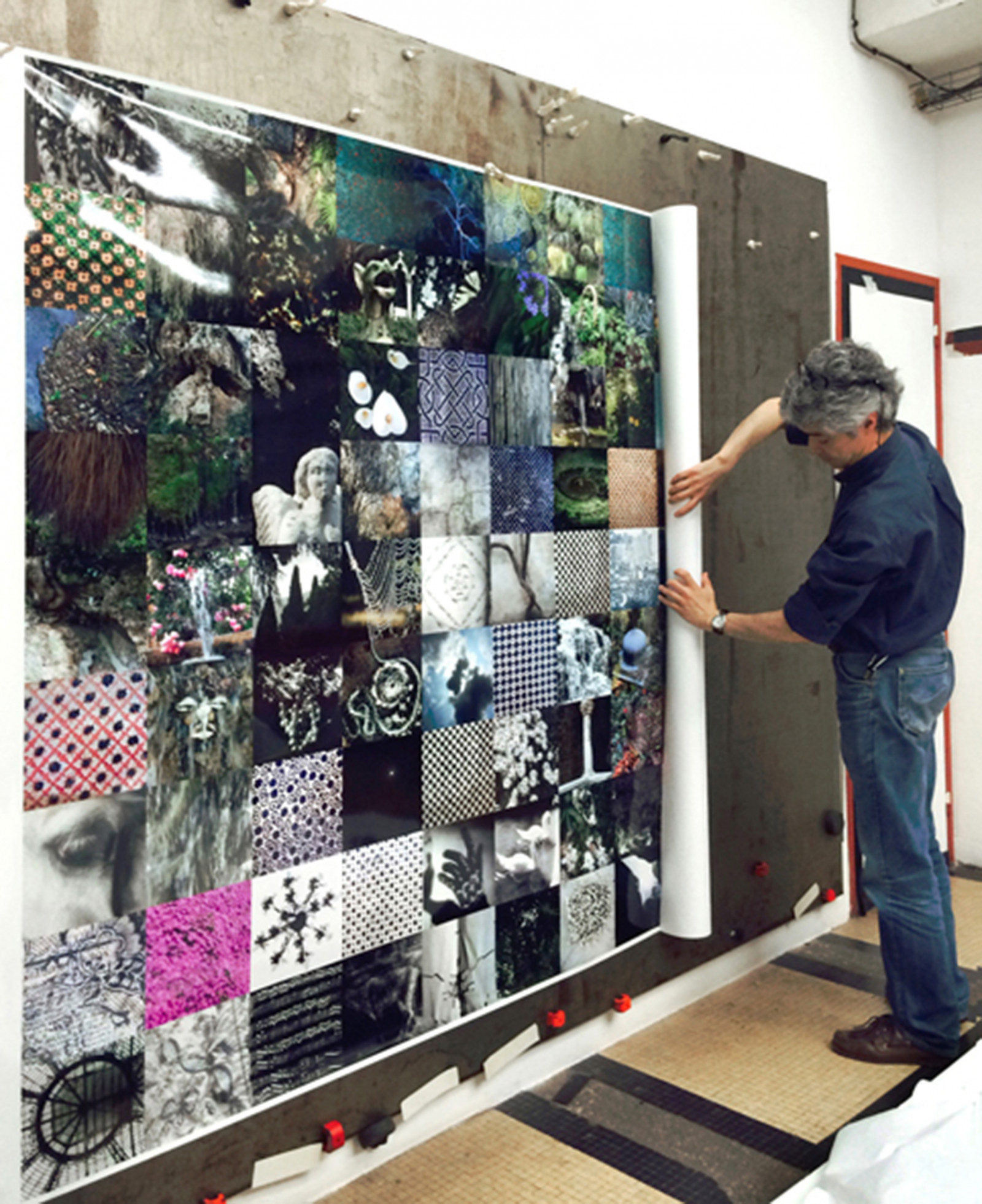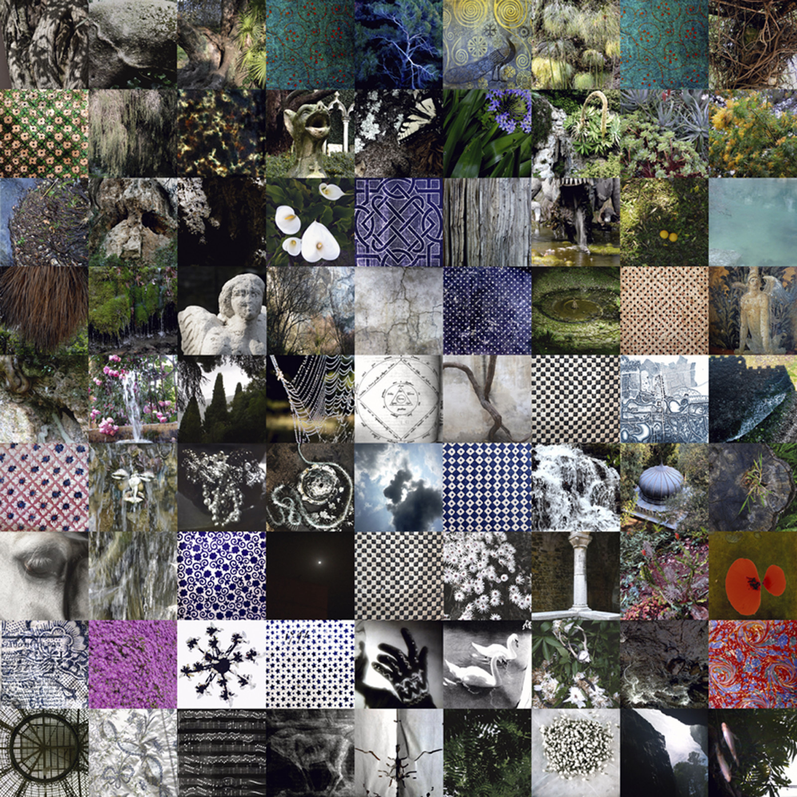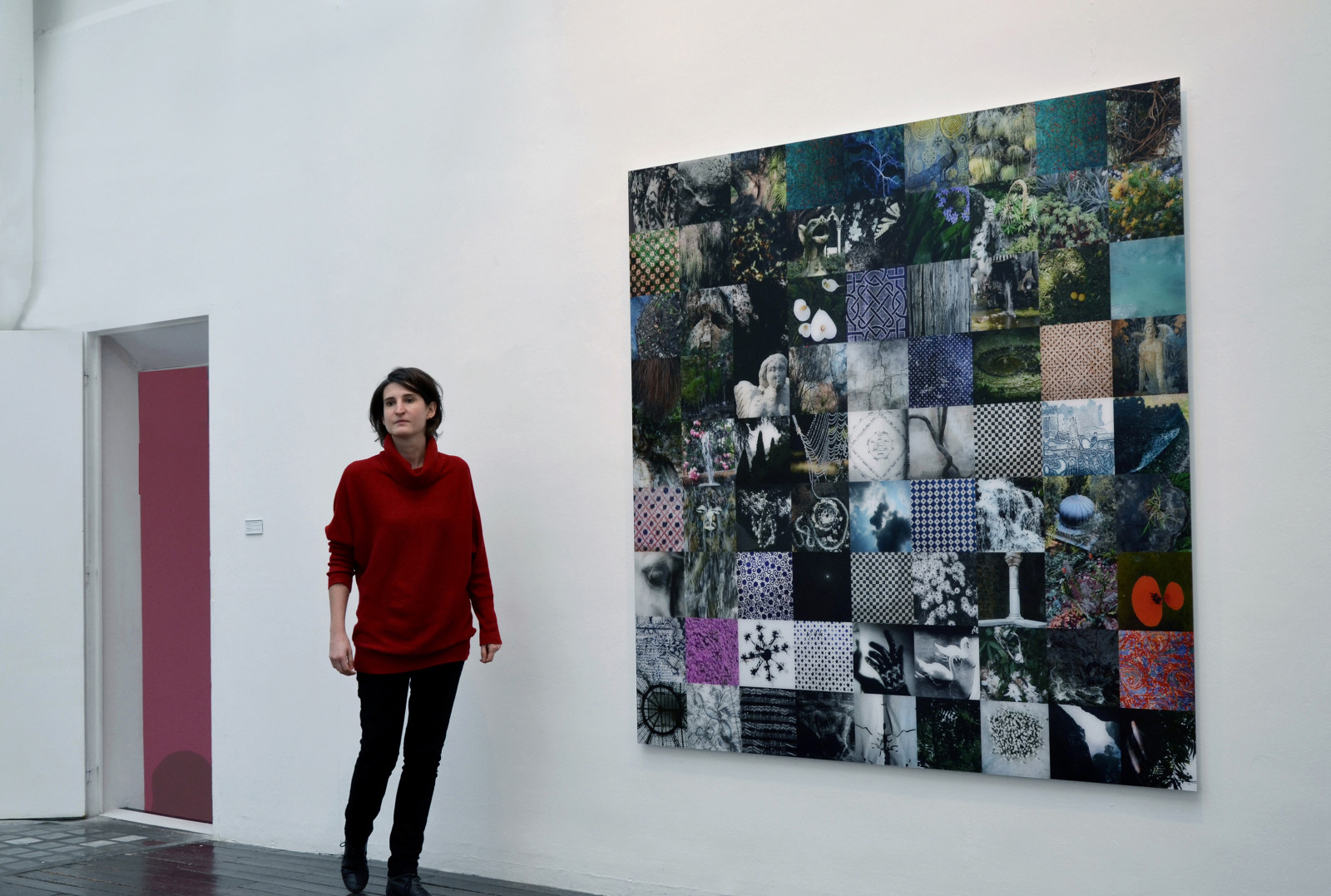 C'est en ce sens que l'œuvre de l'artiste a été construite. Avec méthode, elle décline la figure du carré, symbolique du dominoté, pour édifier de fragment en fragment une fresque. Des prélèvements issus de livres de la bibliothèque côtoient des images mythiques. La représentation du pays de Grasse y est aussi présente par des prises de vue de jardins réalisées par l'artiste lors de ses résidences.