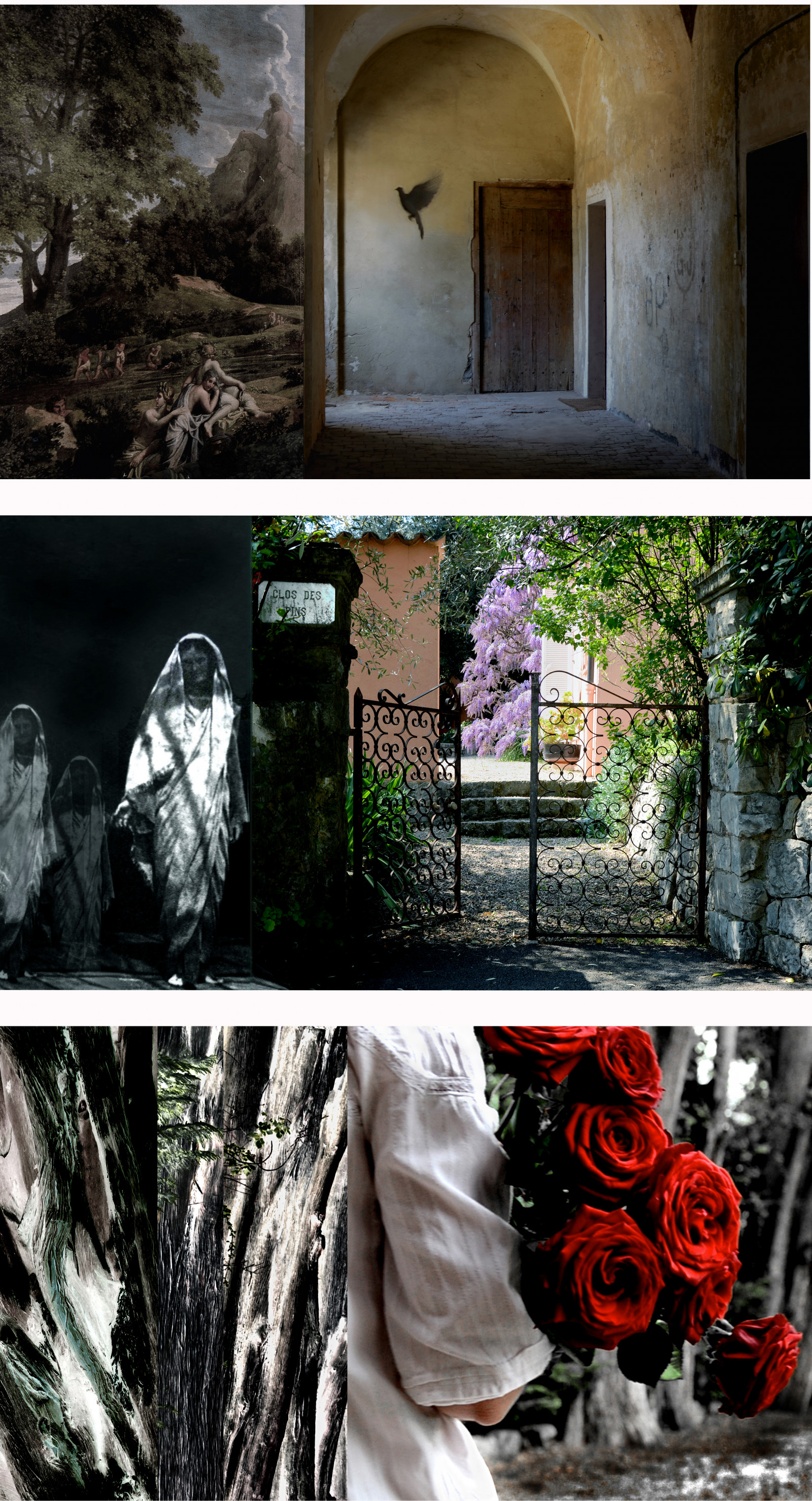Le jardin est à mon sens un espace tout en surabondance, en profusion, gorgé d’eau, de verdure et de monuments semblables à des ruines. Les perspectives y sont délibérément modifiées pour provoquer le vertige. L’œil s’y égare à mesure qu’il parcourt l’œuvre et l’espace qui s’y dessine. Il est un espace clos, ouvrant cependant la perspective d’un paysage lointain. Ce paysage, qui tient à la fois de la forêt et de la jungle, n’a aucune existence réelle ; il est le fruit d’un montage combinant les attributs de jardin : arbres, plantes, rivières, cascades, grottes, étangs, fleurs, insectes... La conception du jardin est une représentation du monde - il oscille entre un modèle d'organisation et un foisonnement allant jusqu'au chaos.